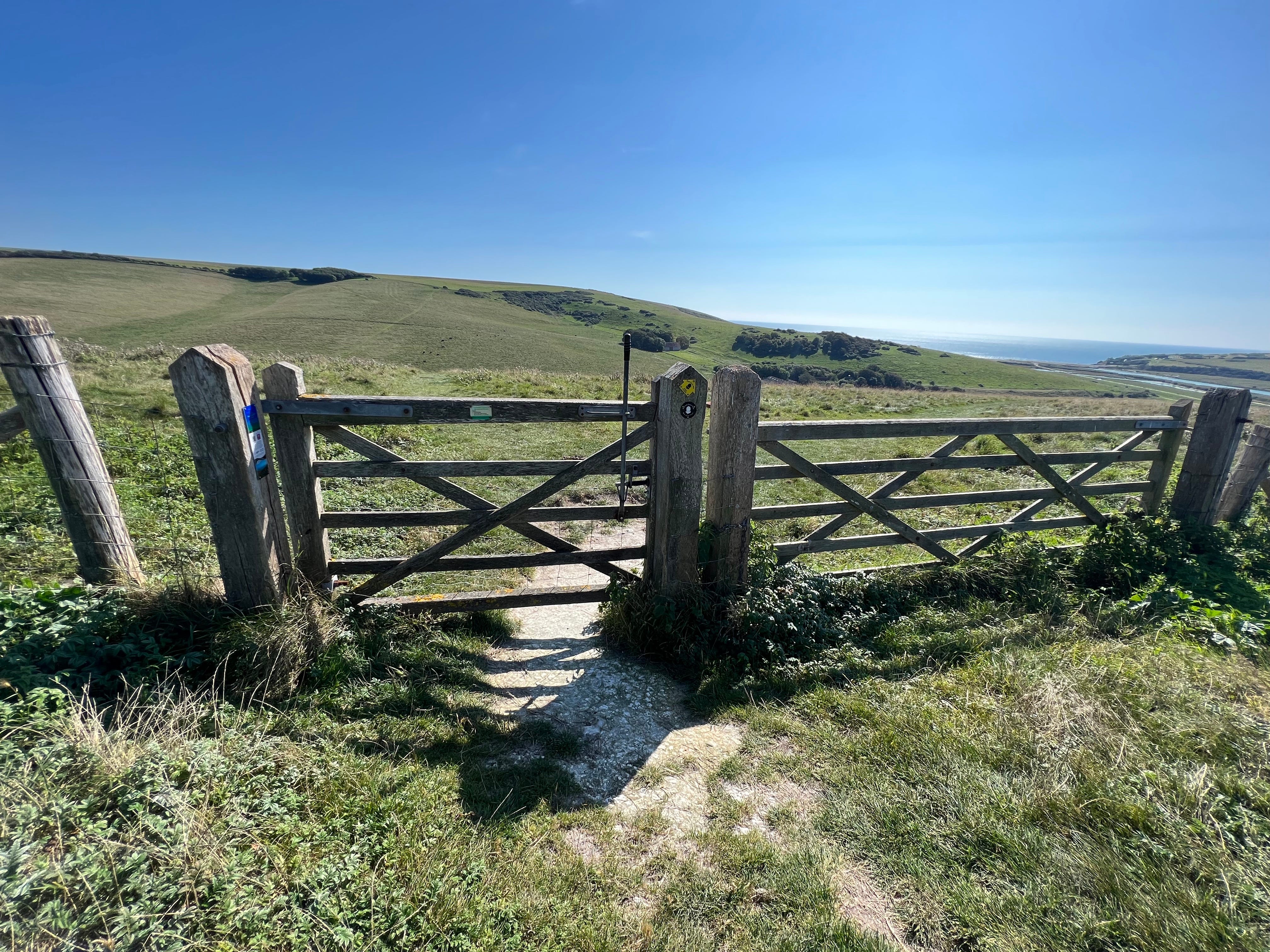 But before you open this gate and bear left down to Foxhole in the lower crook of the valley and perhaps up onto the Seven Sisters, or continue straight down towards the beach, just take a look over your shoulder and onto the ground.